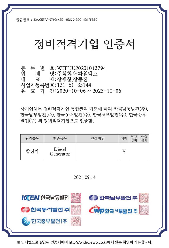 공인검수시험면제증 – 유입 변압기 66KV이하