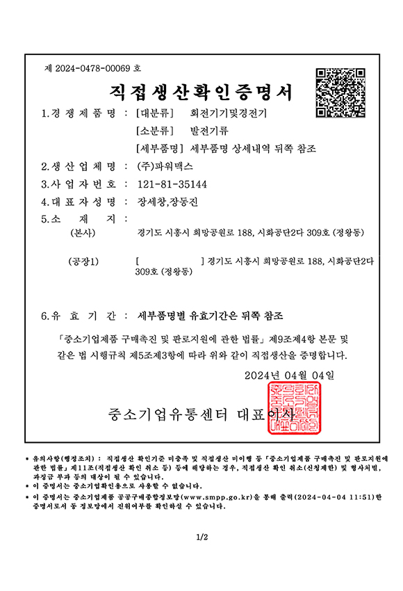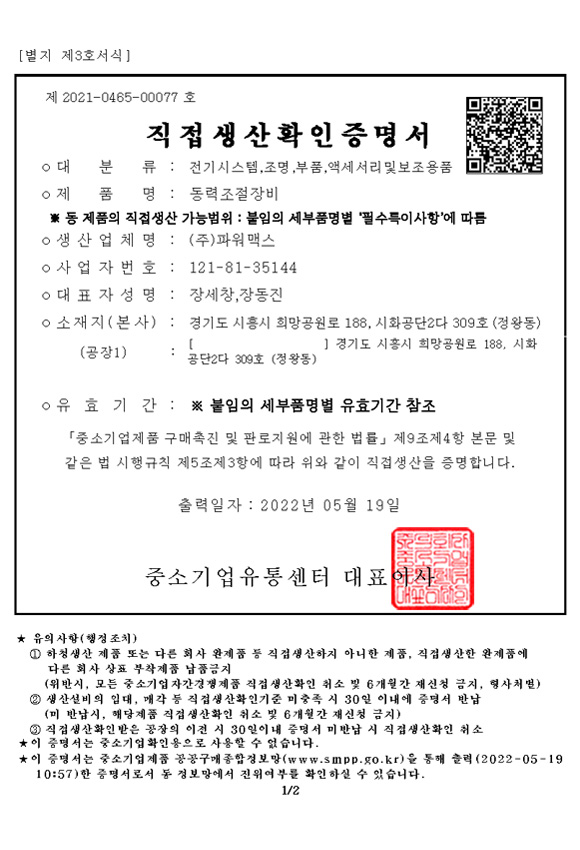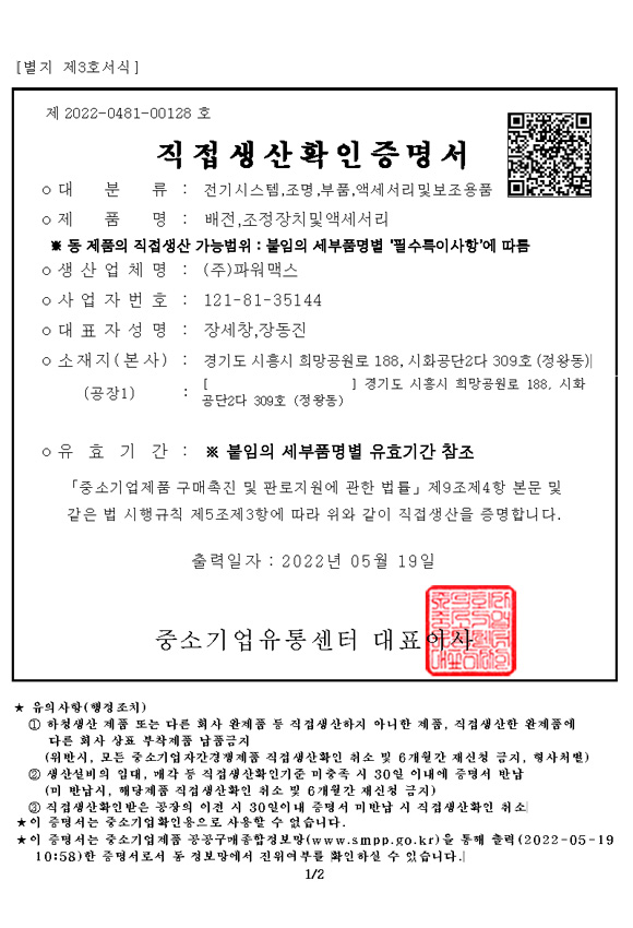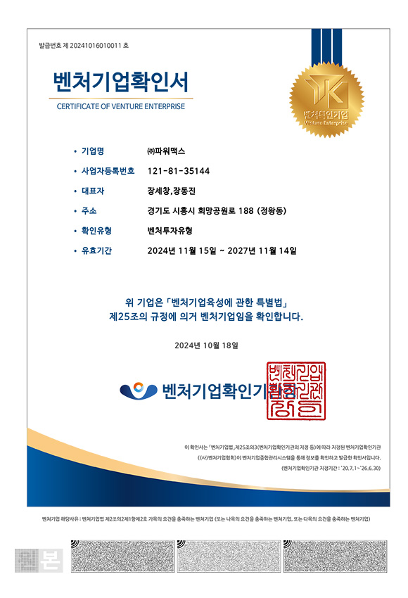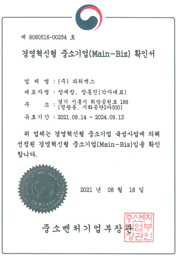 경영혁신형 중소기업(MAIN BIZ)확인서
