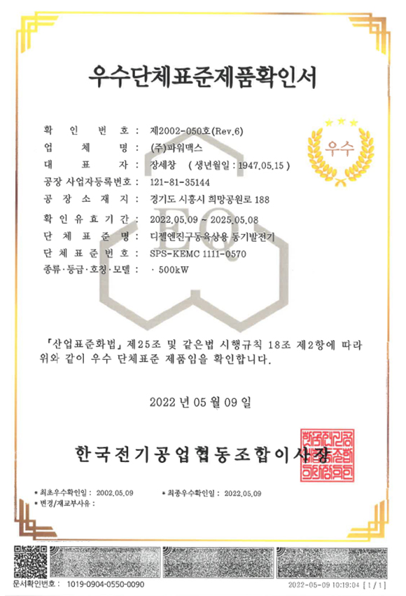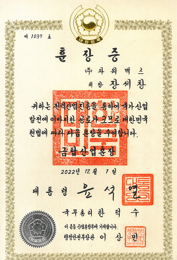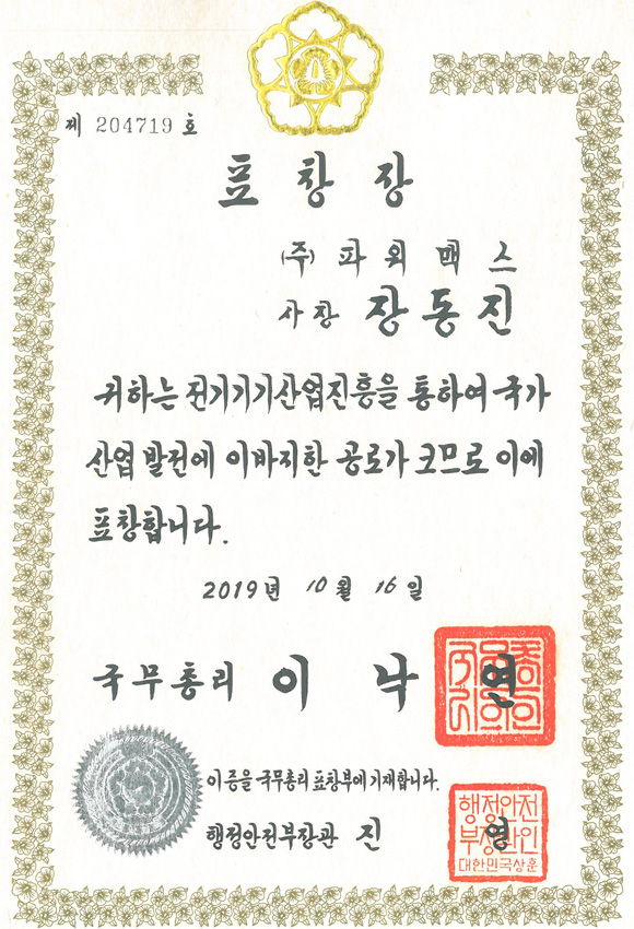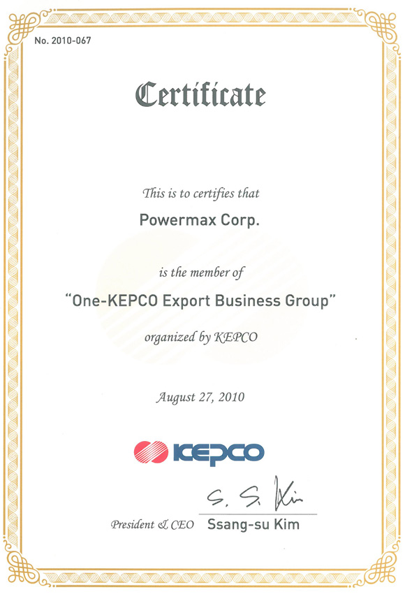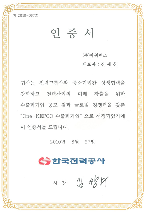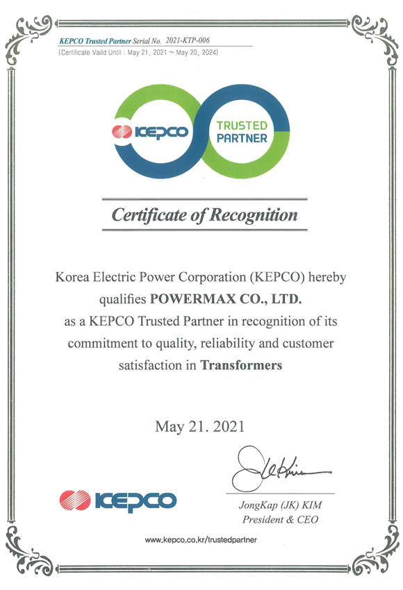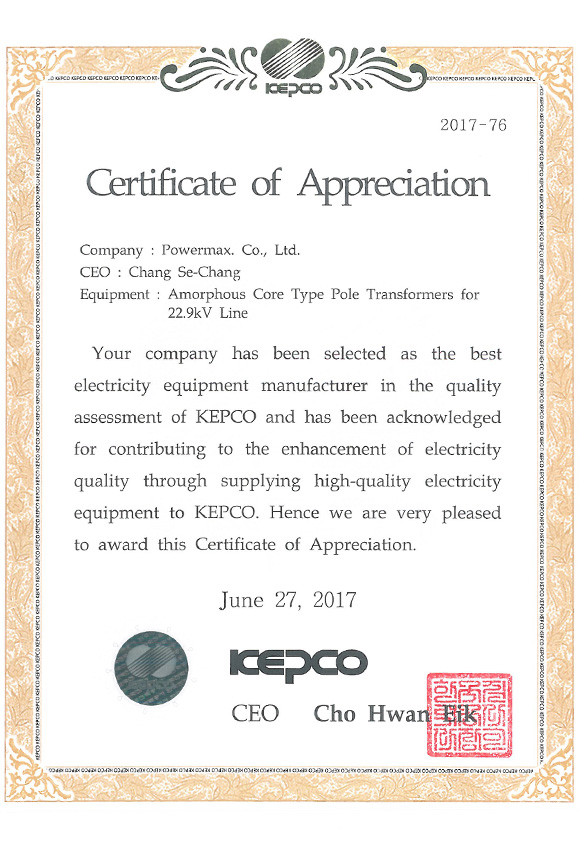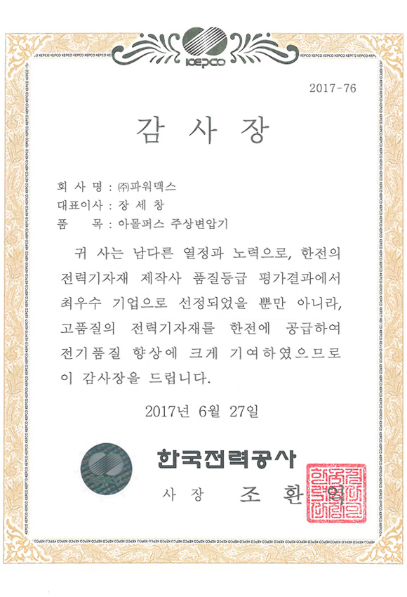 감사장 – 한국전력공사 (아몰퍼스변압기) (en)