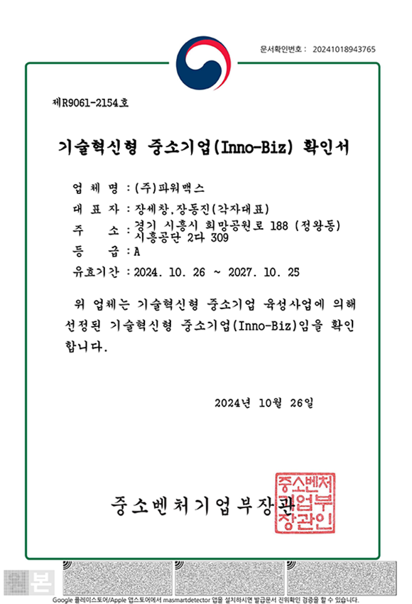 기술혁신형 중소기업(INNO BIZ) 확인서